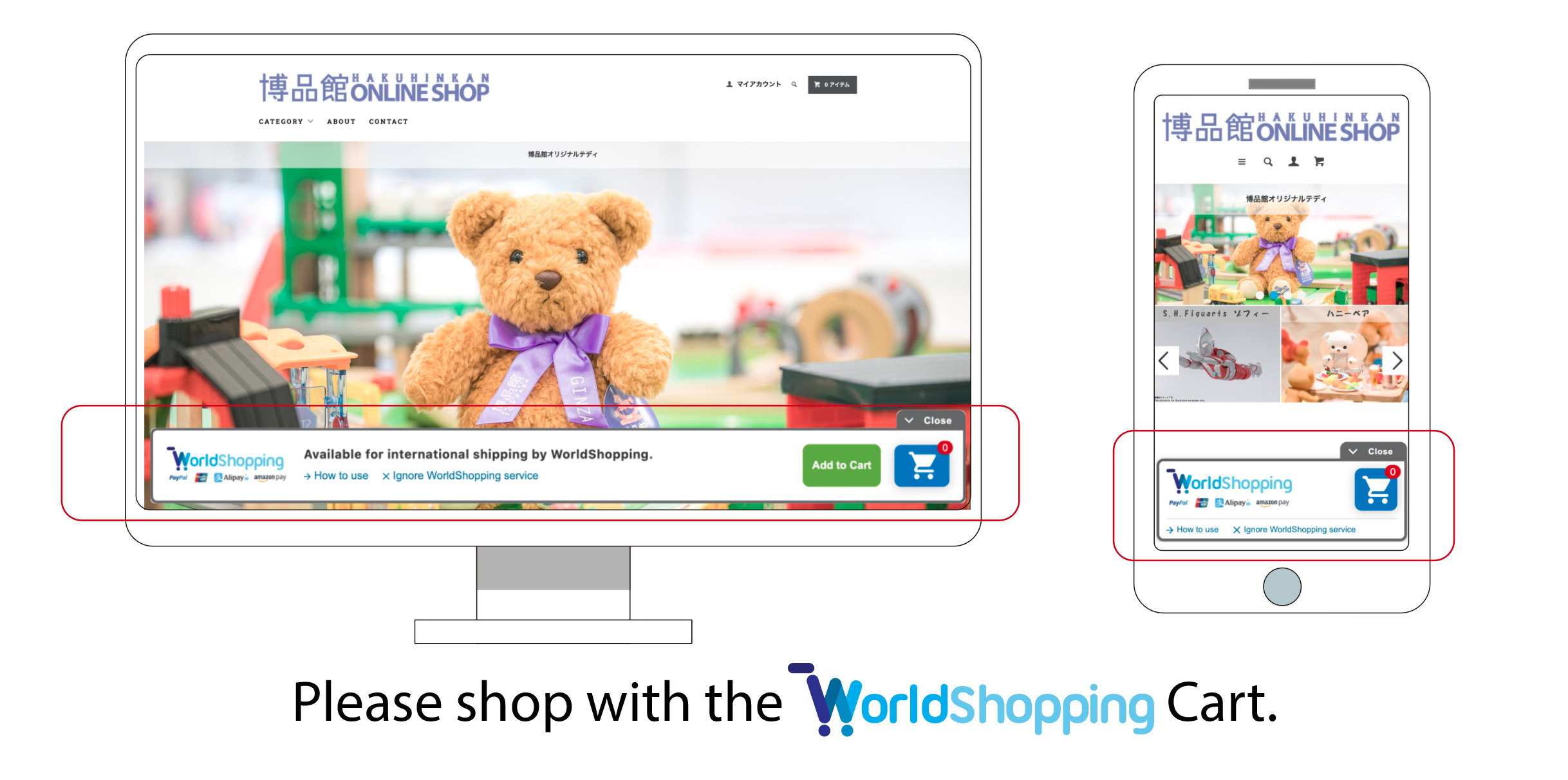 1.When you access the website from overseas, the “WorldShopping Cart” will be displayed automatically.
